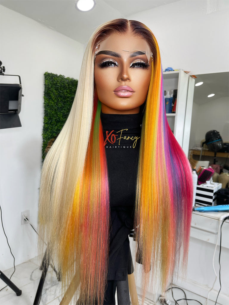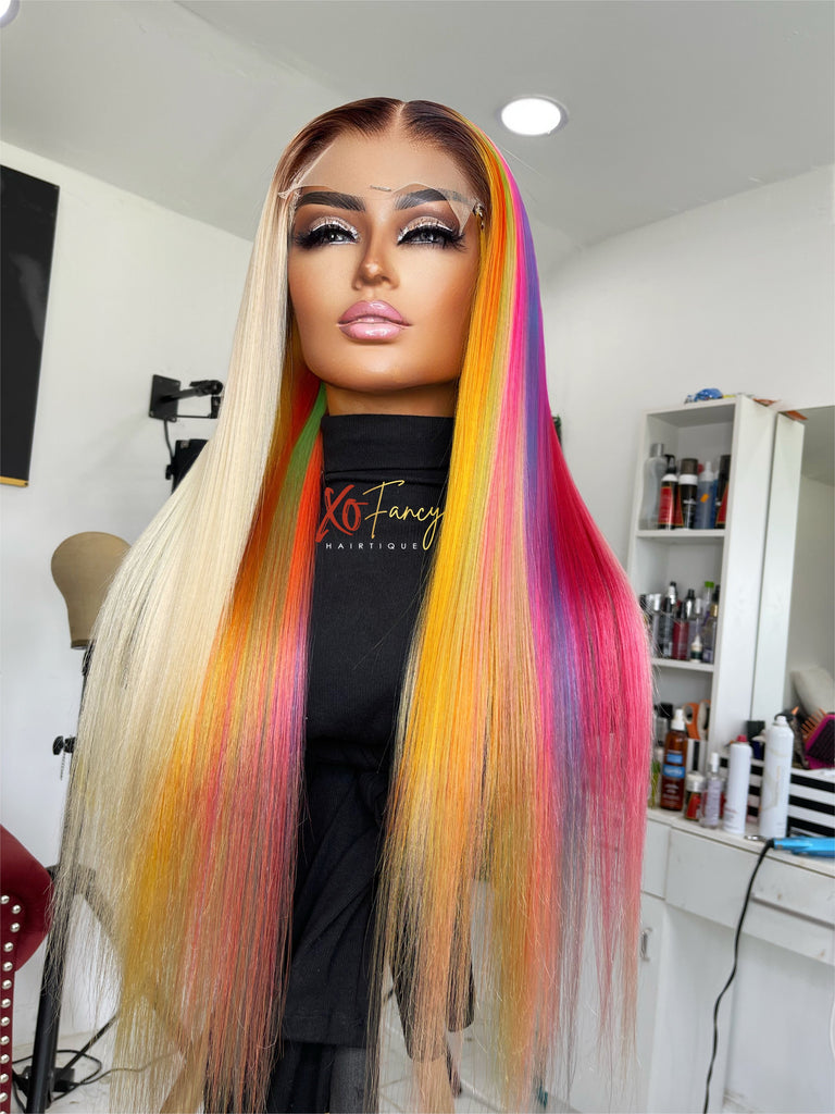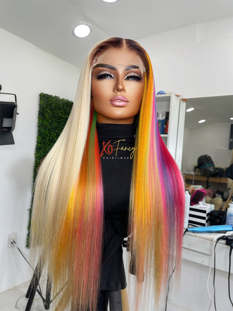 Pride unit is constructed using 24 inch Virgin extensions and 5x5 transparent closure.