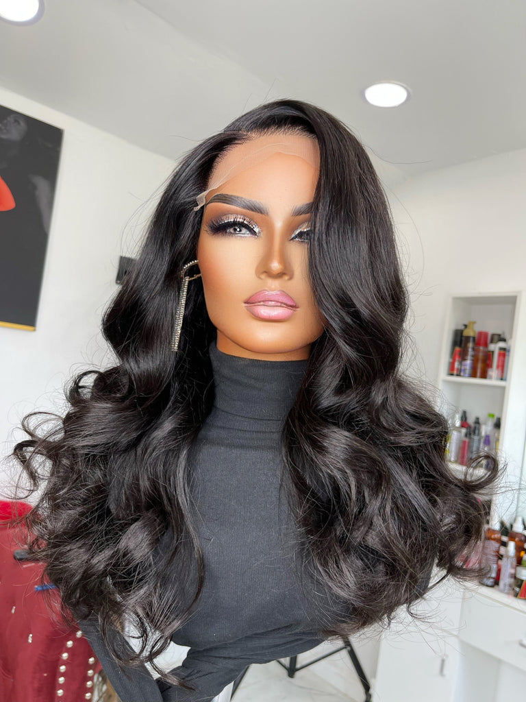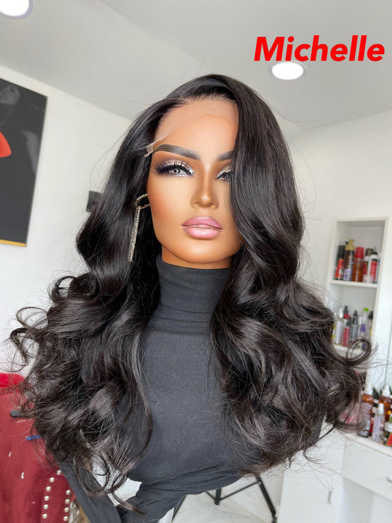 Michelle unit is a PreMade 180 density Unit constructed using 22 inch Virgin extensions and 5x5  transparent closure. Premade Units fits head size Small, Medium, and Large